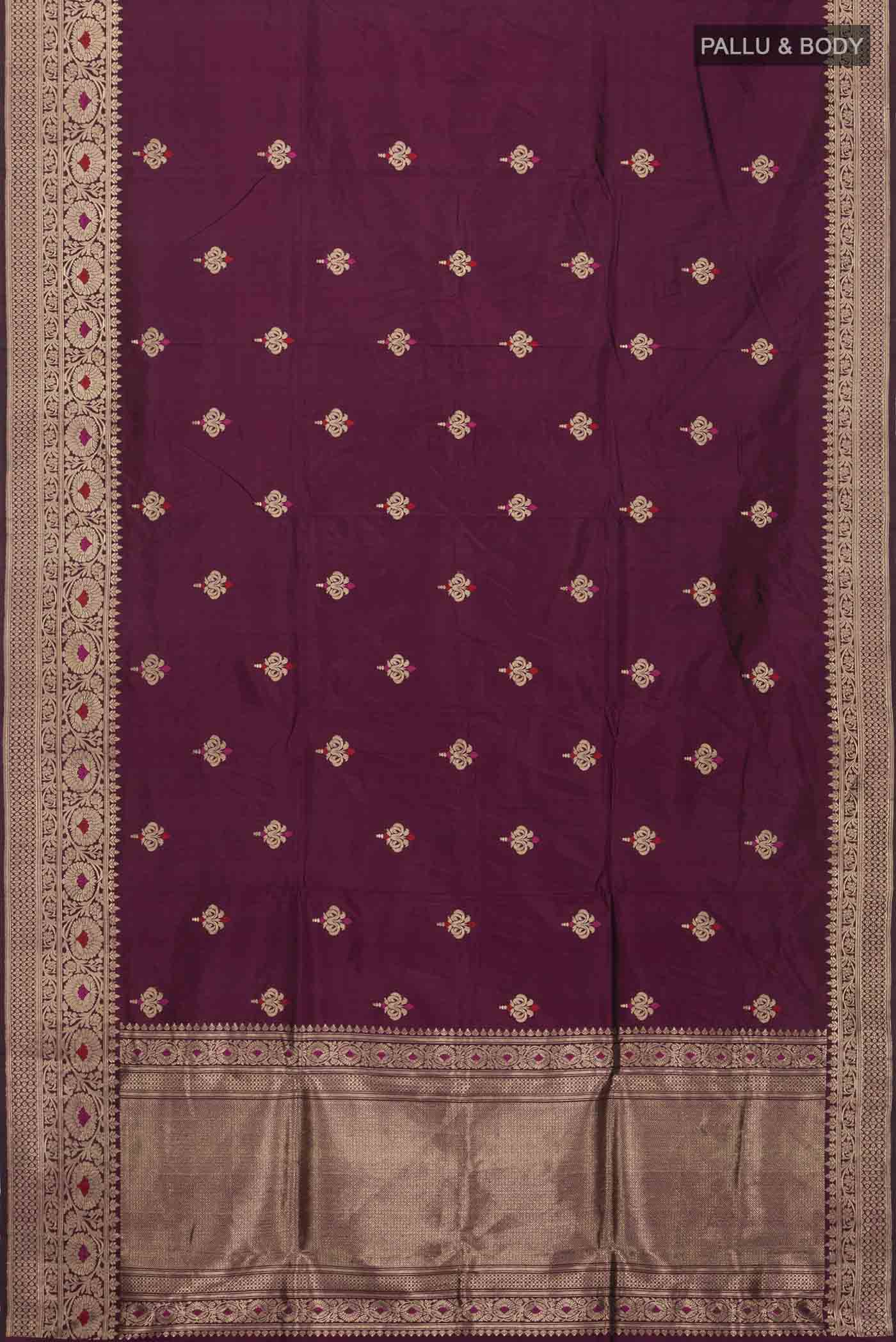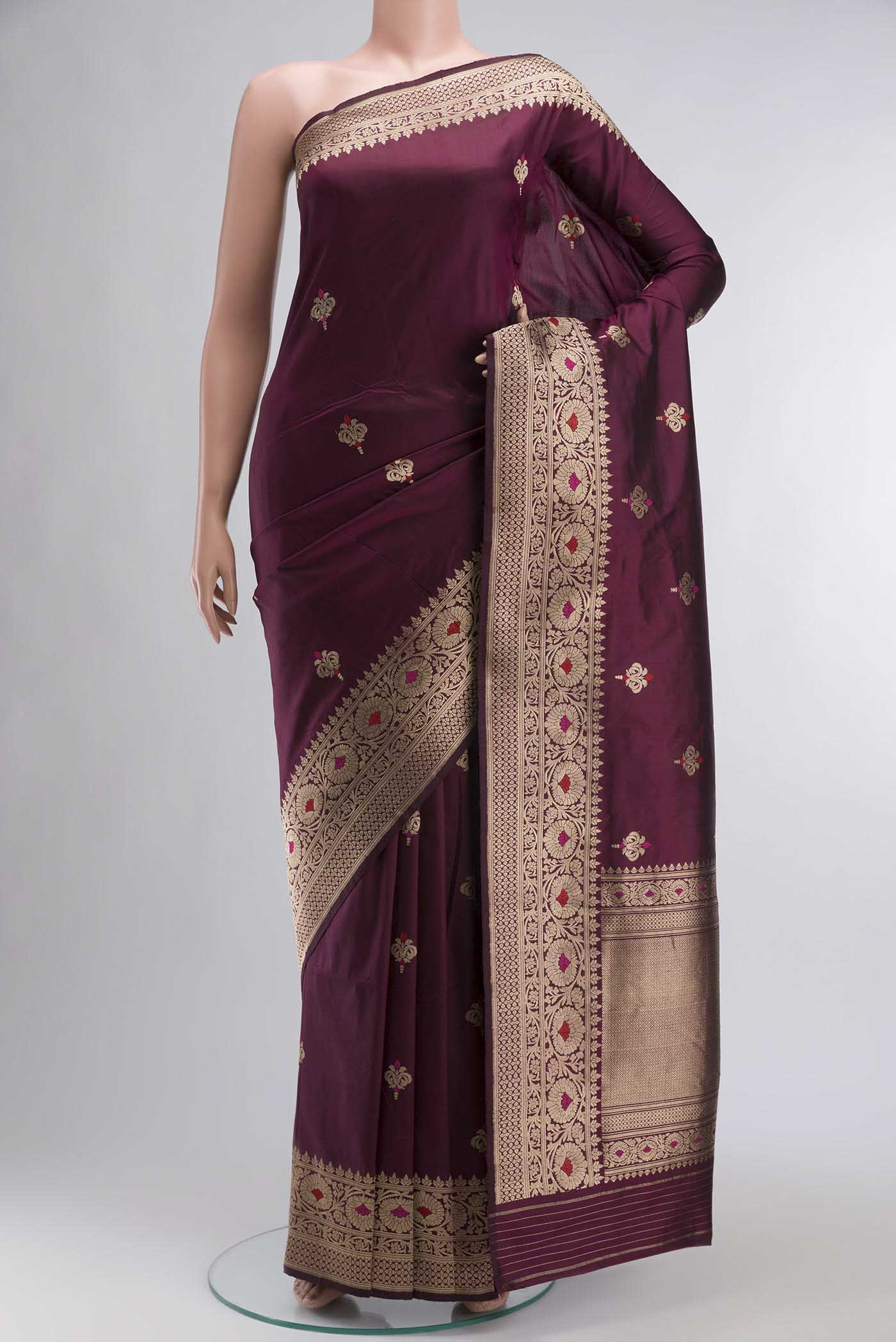 Brown Banarasi Katan Silk Saree with Zari Butta on the body and Zari Border. Includes unstitched blouse.